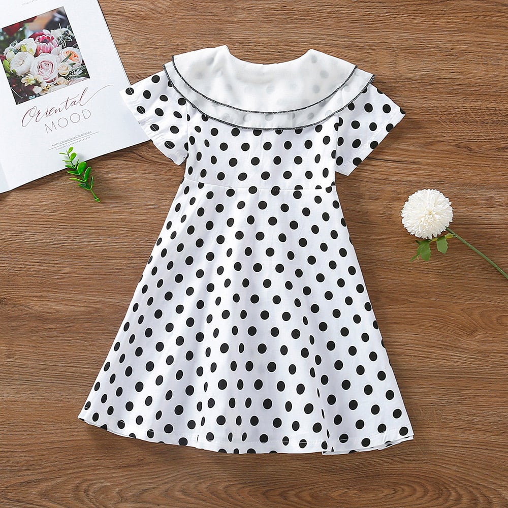 韓国子供服 子供 キッズ ワンピース 親子コーデ レディース 水玉 ドット柄 ホワイト 襟つき