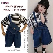 ◇着回し抜群のボーダー柄Tシャツとデニムのハーフパンツの組み合わせです。