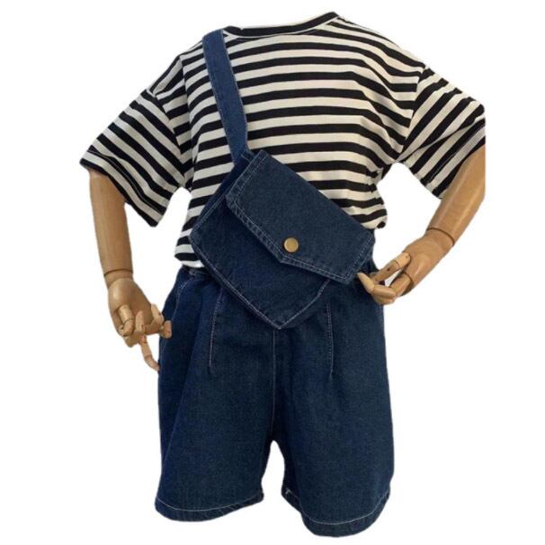 ウエストポーチとしても使えるボディバッグもセット ボーダー柄TシャツとデニムハーフパンツSET