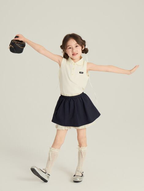 025新作 韓国子供服 子供 キッズ 女児 トップス ノースリーブ polo半袖 夏服 トップス