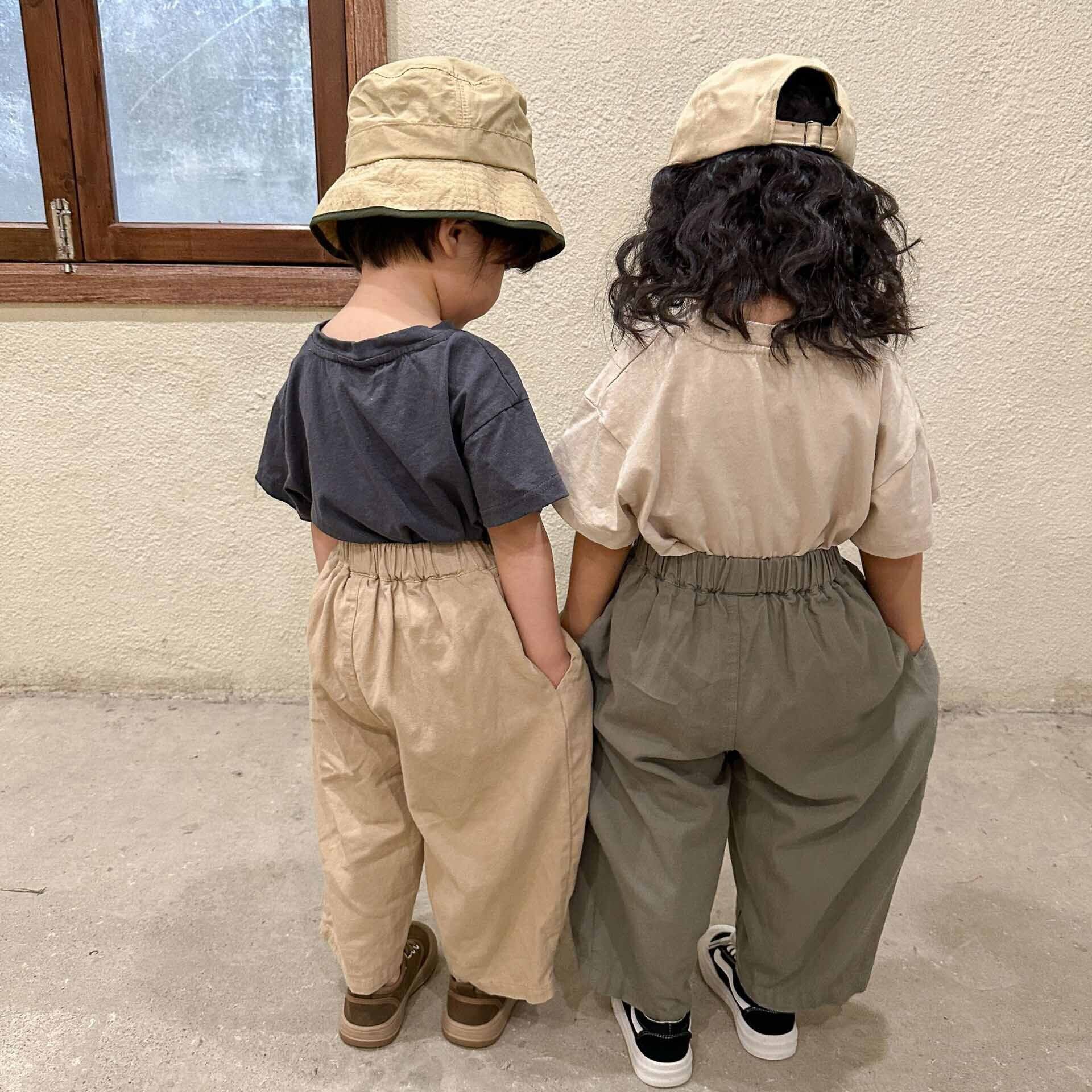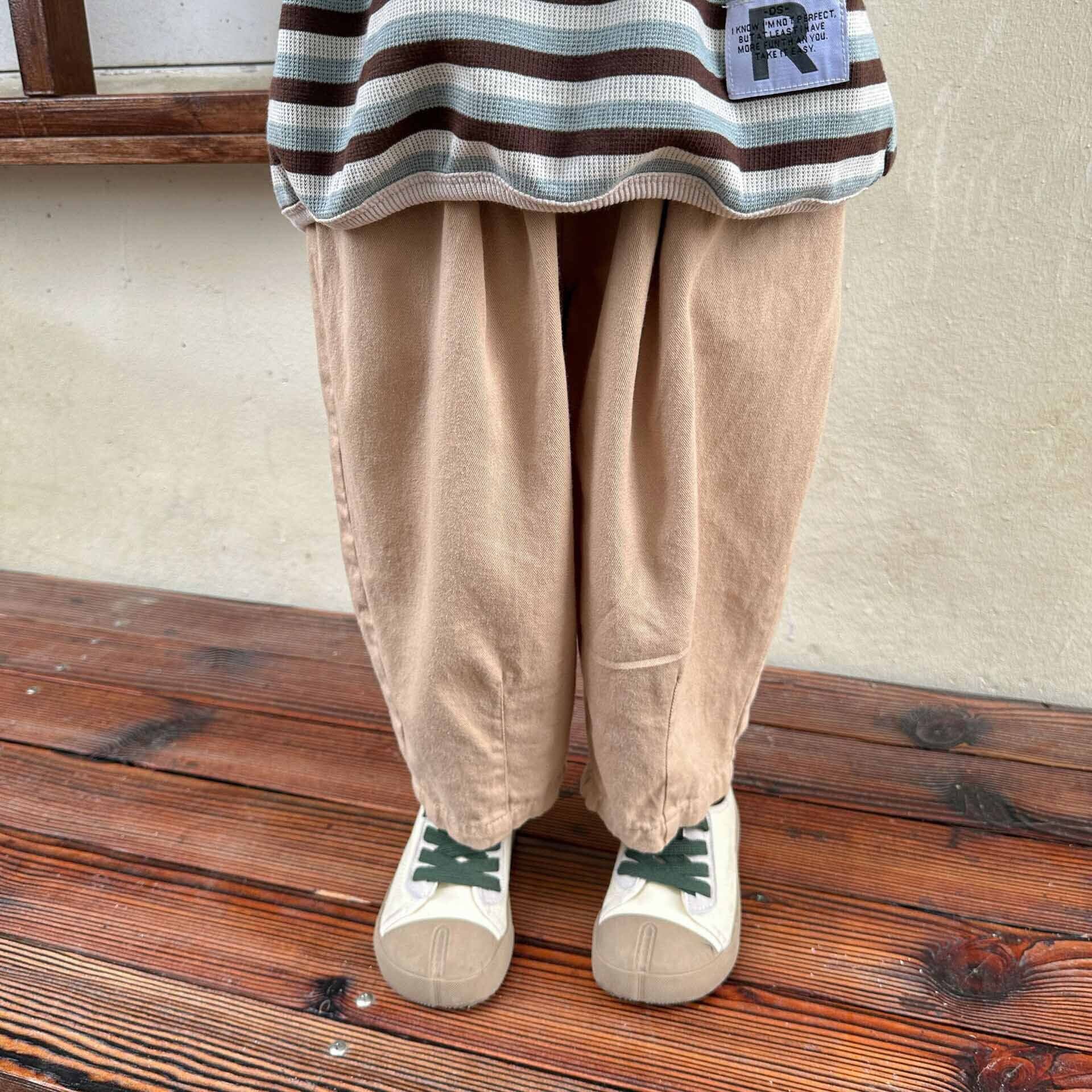 2023新作 韓国子供服 子供 キッズ 女の子 男の子 パンツ ズボン ボトム ウエストゴム ワイド グリーン
