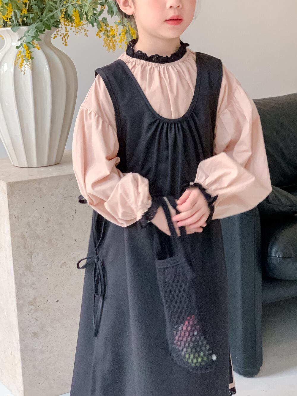 2024新作 韓国子供服 子供 キッズ ワンピース レイヤード セットアップ フリルネック 長袖2 点セット